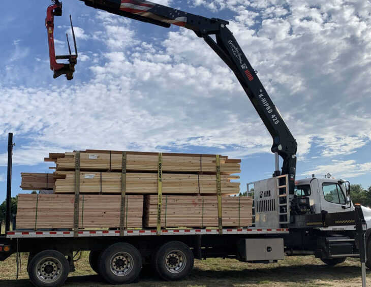We pride ourselves on our great delivery service. We have a top-of-the-line, seven-story, remote-controlled HIAB crane.